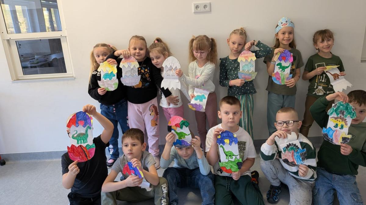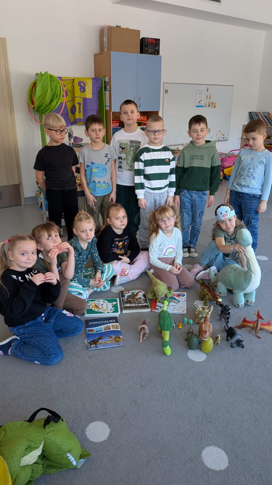 W dniu 26 lutego przedszkolaki z naszej grupy świętowały „Dzień Dinozaura”. Dzieci zgłębiły wiedzę na temat życia dinozaurów, obejrzały ciekawe filmy edukacyjne, z których dowiedziały się, jak żyły te fascynujące stworzenia, jak wyginęły, poznały ich wygląd, sposób odżywiania się i dowiedziały się, kim jest paleontolog. Wykonały ciekawe i pomysłowe prace plastyczne, uczestniczyły w zabawach matematycznych i ruchowych. „Dzień Dinozaura” upłynął wszystkim w miłej i radosnej atmosferze. Na zakończenie zajęć dzieci otrzymały dyplom „Dino - przyjaciela”. (tekst: B. Filip)