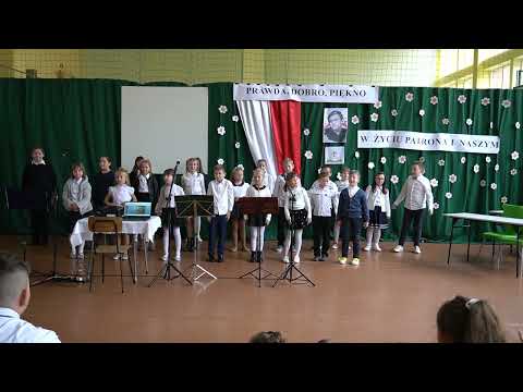 W czasie akademii można było przypomnieć sobie najważniejsze wydarzenia z życia księdza Jerzego, ponieważ najpierw obejrzeliśmy krótki animowany filmik, a następnie zwycięską prezentację o Patronie wyłonioną w ramach szkolnego konkursu organizowanego przez Panią Beatę Białoń. Oczywiście, żeby nie było nudno, dostarczanie wiedzy było przeplatane piosenkami w wykonaniu najmłodszych uczniów z klas I-V. W trakcie uroczystości szkolna grupa teatralna w składzie: Lena Mordarska, Piotr Małek, Marcin Zalewski, Filip Leśniak, Wojciech Górowski i Filip Sadłoń zaprezentowała scenkę z życia uczniów, w której w ramach samokrytyki uczniowie wyjaśnili, dlaczego się nie uczą i nie doceniają tego, co mają, a następnie zdradzili, co by najchętniej robili. Na szczęście artyści zobaczyli w uczniach również dobre strony, no i postanowili nad sobą popracować. Ważną częścią Dnia Patrona było podsumowanie działań mających na celu propagowanie wiedzy o Patronie i udowodnienie, że we współczesnym świecie liczą się wartości, które były ważne dla księdza Jerzego. W tym roku zaprosiliśmy do współpracy Rodziców, którzy razem z dziećmi z zerówki i klas I-III rozwiązywali krzyżówki związane z Patronem. W podziękowaniu za wysiłek zerówka otrzymała klocki edukacyjne do nauki i zabawy w klasie, a pozostali uczniowie płyty CD z piosenkami dla dzieci. Fundatorem nagród jest Wydawnictwo Promyczek Dobra. Starsi uczniowie stanęli przed większym wyzwaniem, bo wraz z Rodzicami wzięli udział w konkursie literackim na temat: Czy Prawda, Dobro i Piękno są obecne we współczesnym świecie, czy są tylko papierowymi wartościami? Wzięło w nim udział 8 zespołów rodzinnych - wszyscy stali się zwycięzcami, więc otrzymali Dyplomy – podziękowania oraz nagrody ufundowane przez organizatorów Dnia Patrona. Prace literackie połączyły pokolenia, a budujące jest również to, iż przeważyło optymistyczne spojrzenie na człowieka i pojawiły się dowody, iż Dobro, Prawda i Piękno są obecne w naszym życiu. Zgromadzeni na uroczystości widzowie mogli wysłuchać fragmentów prac i wziąć sobie do serca przesłanie Flory Edwards: „Kiedy pomagamy innym, pomagamy sobie, ponieważ wszelkie dobro, które dajemy, zatacza koło i wraca do nas. Pamiętajmy o tym i starajmy się być dobrzy i piękni wewnętrzne”. Mamy nadzieję, że nikt się nie nudził, widać było, że wszyscy świetnie się bawili, niektóre momenty skłaniały do refleksji, a inne, jak wspólne śpiewanie z malutkimi wokalistami, bawiły. Jak to jednak zwykle bywa, wszystko co dobre szybko się kończy, więc trzeba znów poczekać rok na kolejną uroczystość. Mamy nadzieję, że w tym czasie narodzą się nowe pomysły i znów nie zawiedziemy, a tymczasem naszym mottem życiowym niech stanie się twierdzenie „Zło dobrem zwyciężaj”. (tekst: A. Tokarska)