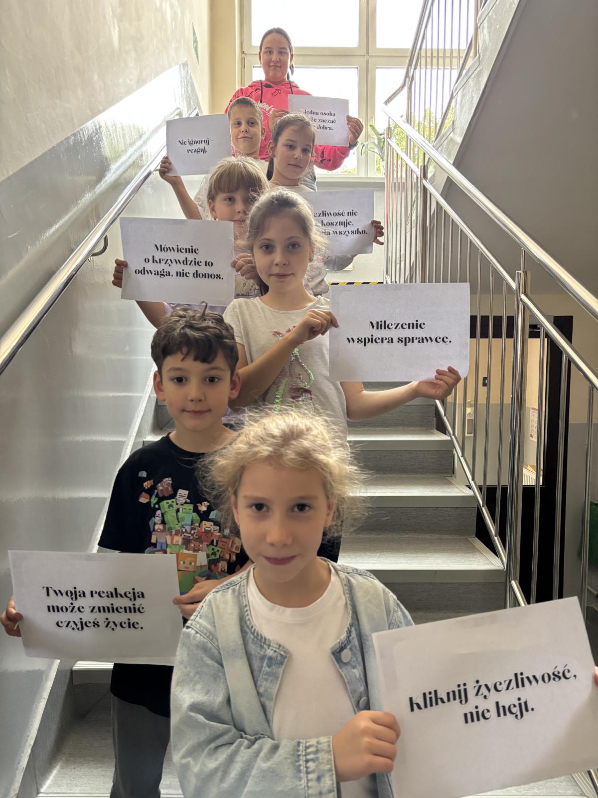 Chcemy, aby każde dziecko wiedziało, że nie musi godzić się na ośmieszanie, wykluczanie czy przemoc, a po pomoc można sięgać bez wstydu i strachu. Budujmy szkołę pełną szacunku, empatii i odpowiedzialności za siebie i innych. (tekst: J. Cisoń)