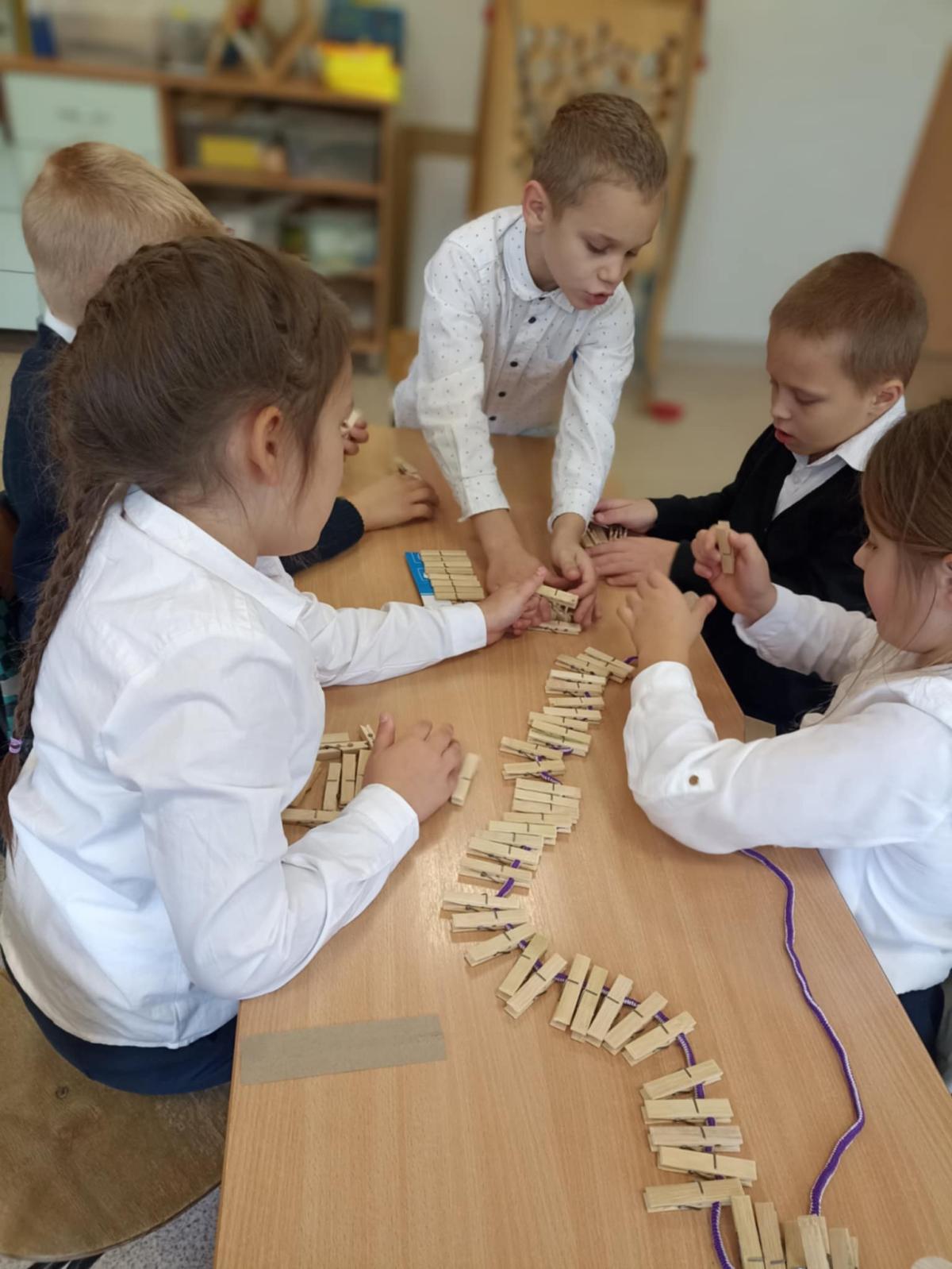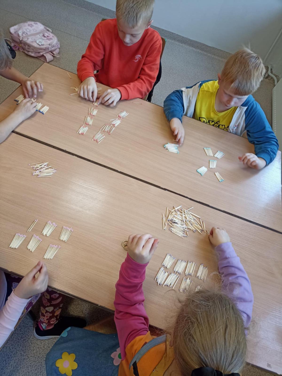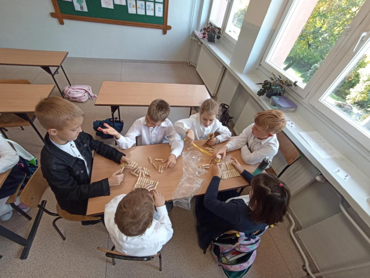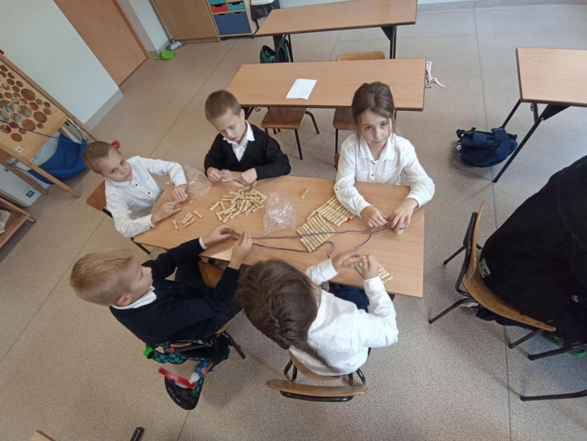 Pierwszaki z naszej szkoły w pocie czoła :) pracują na lekcjach - np. sortują znane im przedmioty wg danej cechy, przeliczają, liczą do stu przy wykorzystaniu fasolek, układają je w rzędach po dziesięć i liczą dziesiątkami. Nie ma wątpliwości, że rosną nam mali geniusze. (tekst: K. Błachuta)