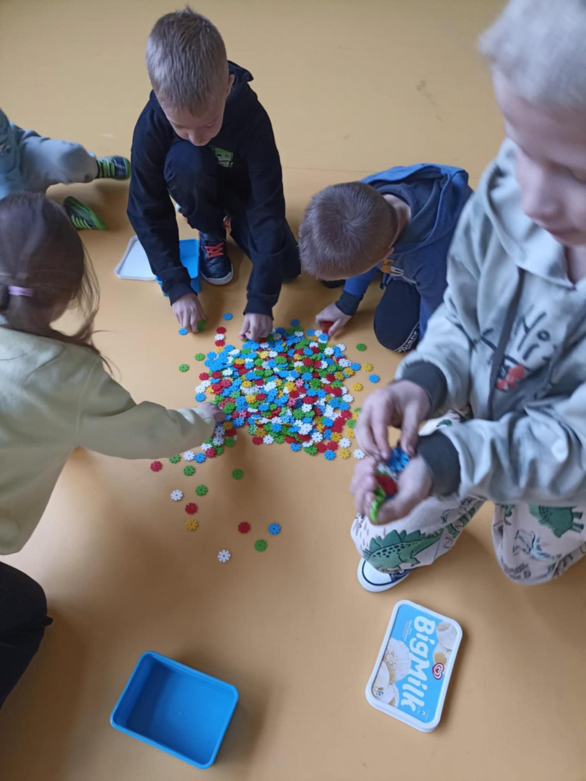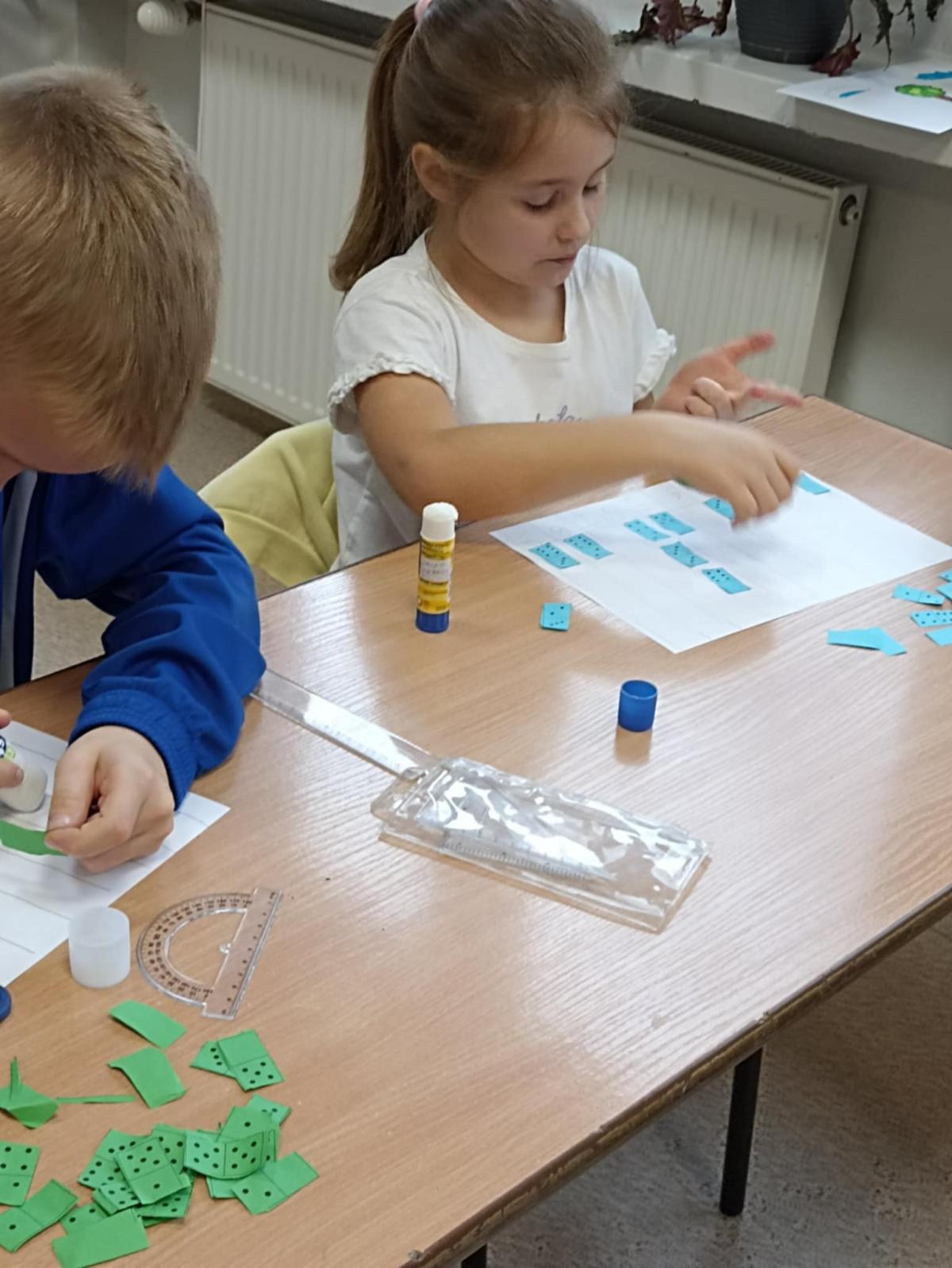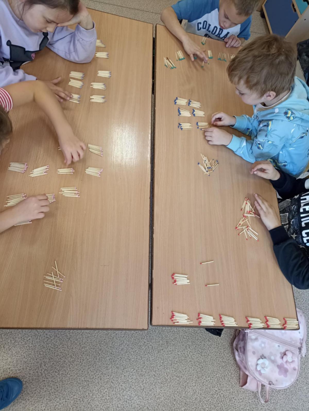 Pierwszaki z naszej szkoły w pocie czoła :) pracują na lekcjach - np. sortują znane im przedmioty wg danej cechy, przeliczają, liczą do stu przy wykorzystaniu fasolek, układają je w rzędach po dziesięć i liczą dziesiątkami. Nie ma wątpliwości, że rosną nam mali geniusze. (tekst: K. Błachuta)