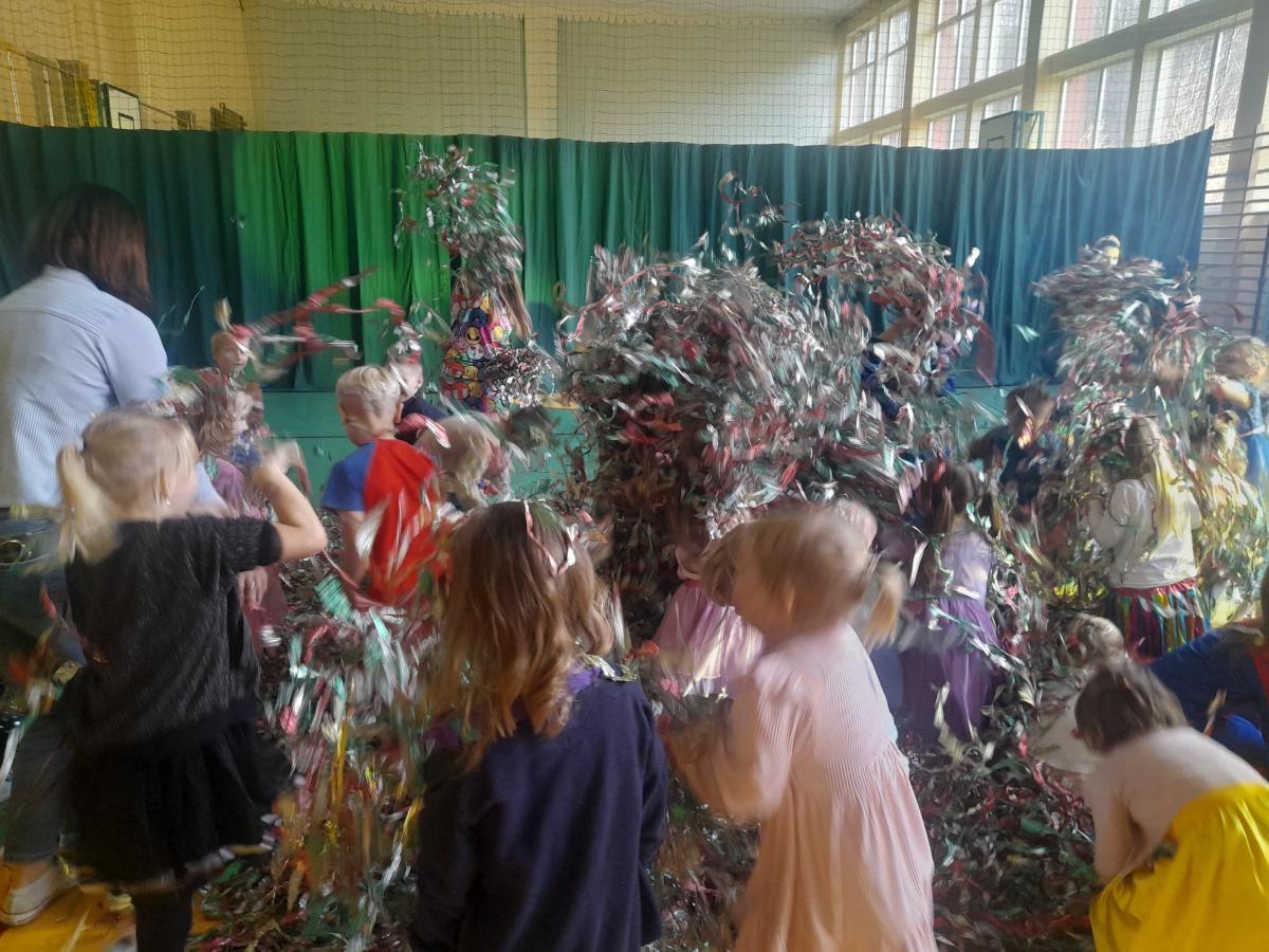W czwartek 20.11.25 w naszym przedszkolu odbyła się niesamowita zabawa andrzejkowa, którą zorganizowali wynajęci przez Radę Rodziców animatorzy z firmy BabyFun! Przedszkolaki miały okazję uczestniczyć w wielu zabawach tanecznych, gdzie nie brakowało śmiechu i radości. Na dzieci czekały także pyszności w postaci popcornu i waty cukrowej. Dodatkowo uczniowie z samorządu uczniowskiego wykonywalichętnym maluchom specjalne tatuaże. Z kolei rodzice przygotowali prezenciki, które sprawiły, że ten dzień był jeszcze bardziej wyjątkowy. Serdecznie dziękujemy wszystkim, którzy włączyli się w organizację tej uroczystości. (tekst: A. Mróz)
