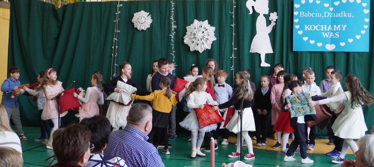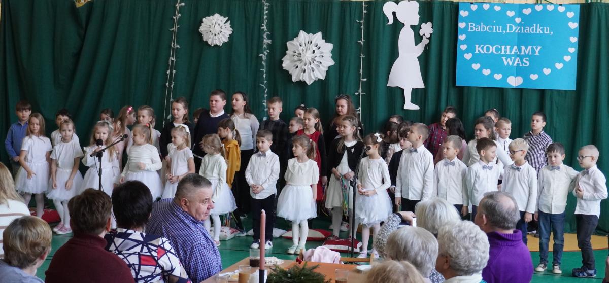 W środę 21.01.2026 r. w naszej szkole odbyło się wyjątkowe święto, Dzień Babci i Dziadka. Uroczystość rozpoczęła się powitaniem Gości i przemówieniem Pana Dyrektora. Na scenie zaprezentowały się: najmłodsza grupa "Skrzaty", dzieci z zerówki i uczniowie z klas I-III, w pięknie przygotowanych występach artystycznych.